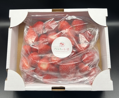 くまかわいちご園の冷凍いちごは、完熟した一番おいしいタイミングで収穫し、ヘタを取り、すぐに冷凍しています